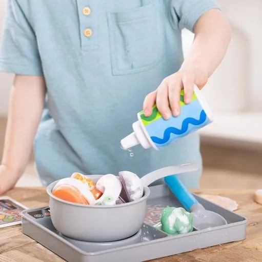 Το Melissa & Doug Water WOW μαγείρεμα με νερό επιτρέπει στα παιδιά να μαγειρεύουν πολύχρωμα γεύματα μόνο με μια σταγόνα νερό. Η κατσαρόλα, το κουτάλι και τα φαγητά που αλλάζουν χρώμα εισάγουν τα παιδιά σε μαγειρικές περιπέτειες, όπου μπορούν να σιγοβράσουν, να τηγανίσουν και να ατμίσουν. Το σετ εμπνέει ατελείωτο δημιουργικό παιχνίδι και φαντασία στην κουζίνα.