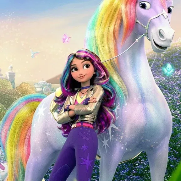 Στον ανθισμένο κήπο του Unicorn Academy, η Ava γελά: «Η χαίτη της Star λάμπει τόσο που χρειάζομαι γυαλιά ηλίου!» Η Isabel χαμογελά στη Cloud: «Επιδεικνύεται για το ουράνιο τόξο.» Η Star χλιμιντρίζει περήφανα. Η Cloud κουνά την ουρά της: «Έτοιμες για αέρινα κόλπα;» Η Isabel γνέφει: «Ας βρούμε τα χαμένα κρύσταλλα του ουράνιου τόξου πριν δύσει ο ήλιος!» Όλοι ξεκινούν μαζί.